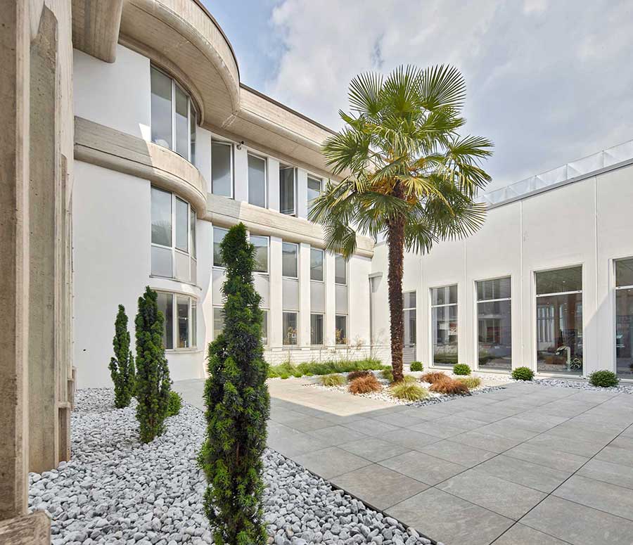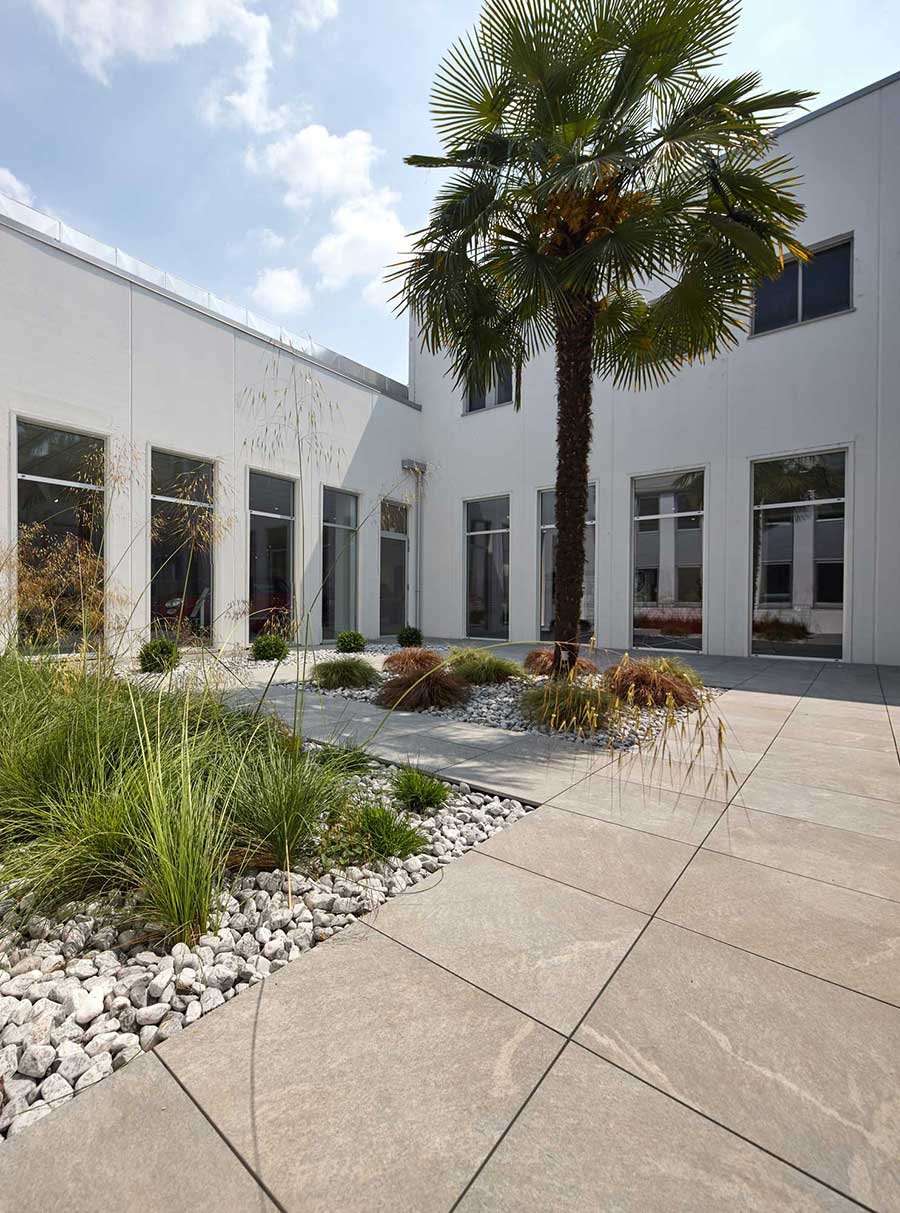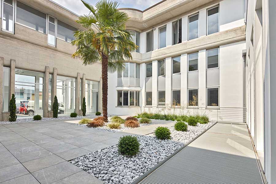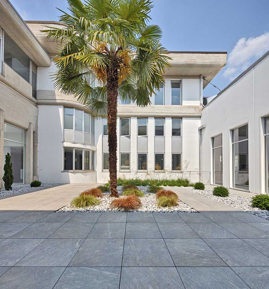Für das Projekt des Außenbereiches des Autoshowroom Bossoni in Brescia wurde der Bodenbelag aus gesintertem Stein L'ALTRA PIETRA gewählt.